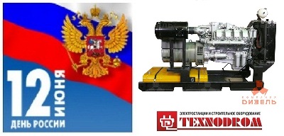 С 1 июня до 29 июня 2012 года Представительство "ТехноДром" в Ярославле проводит специальную акцию посвященную Дню России (День независимости) и предлагает Дизельную электростанцию АД200 на двигателе ТМЗ со скидкой 5%!