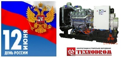 С 1 июня до 29 июня 2012 года Представительство "ТехноДром" в Ярославле проводит специальную акцию посвященную Дню России (День независимости) и предлагает Дизельную электростанцию АД250 на двигателе ТМЗ со скидкой 5%!