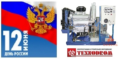 С 1 июня до 29 июня 2012 года Представительство "ТехноДром" в Ярославле проводит специальную акцию посвященную Дню России (День независимости) и предлагает Дизельную электростанцию АД60 на двигателе ЯМЗ со скидкой 5%!